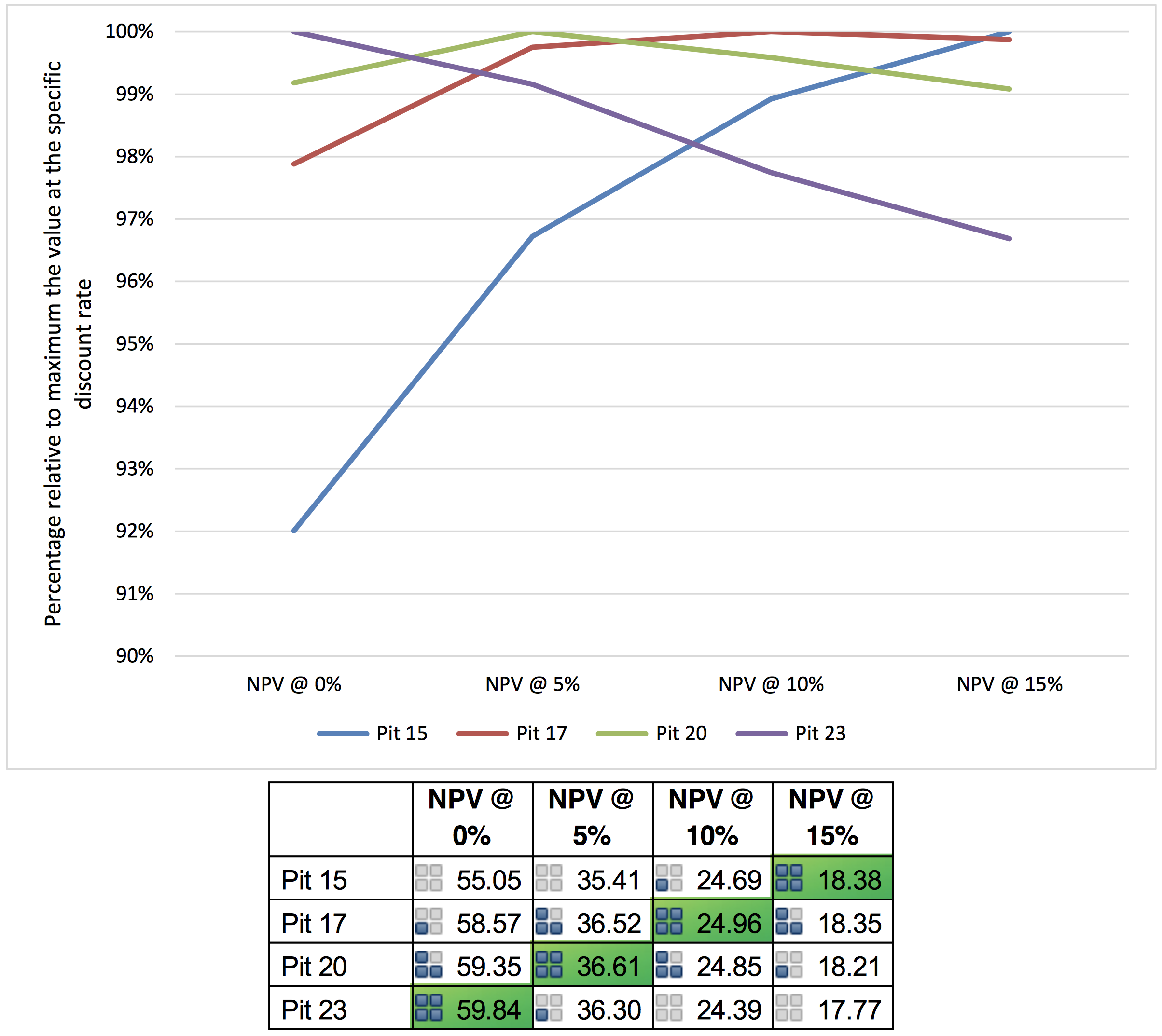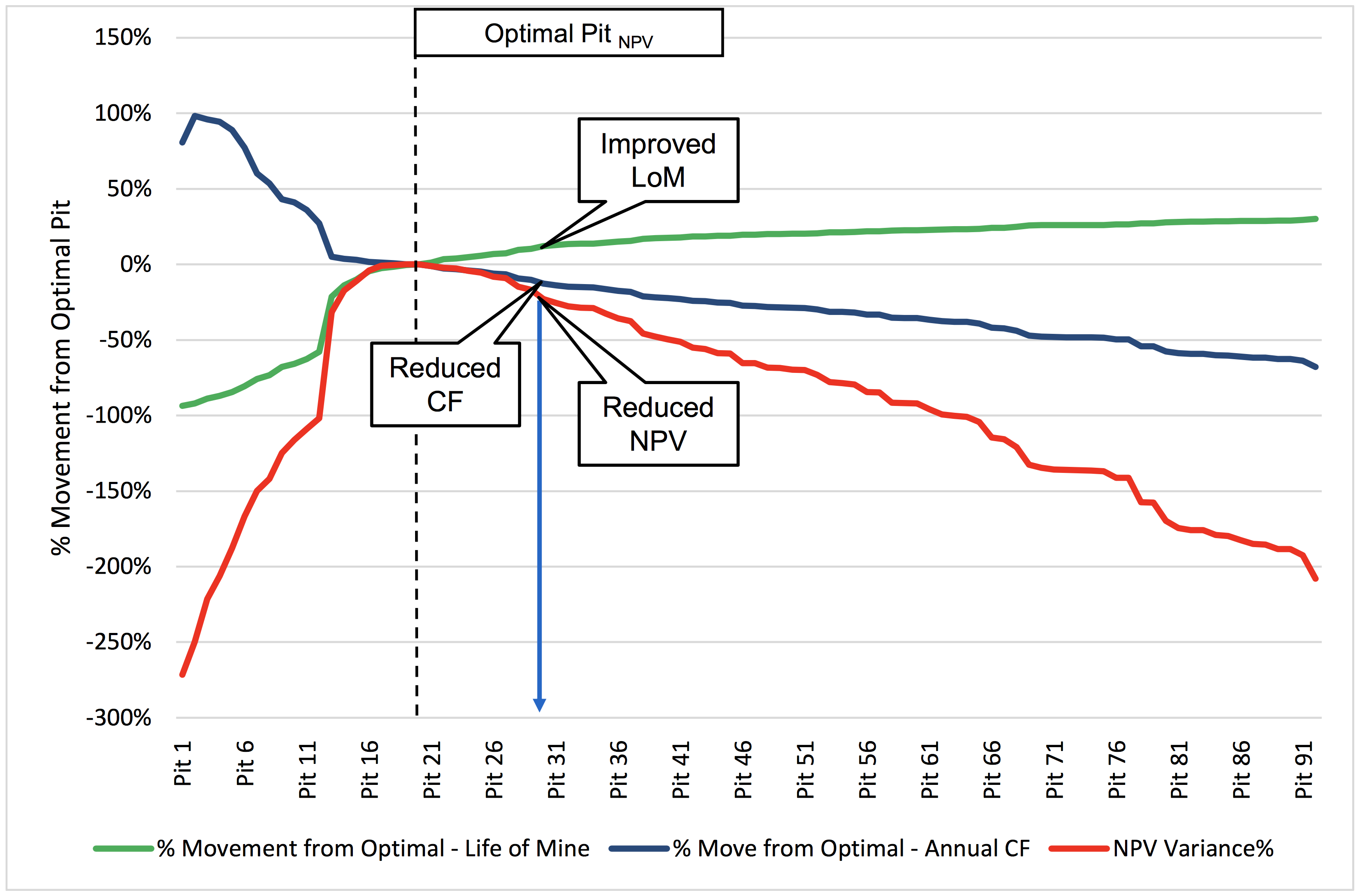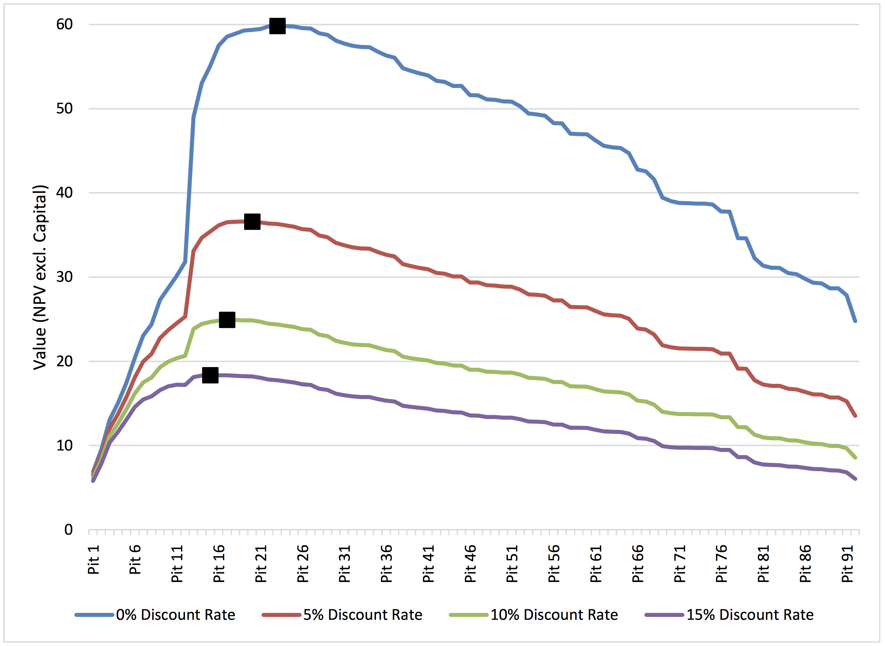 - Changes to the optimisation input parameters, specifically the discount rate, without due process may have a significant impact on the pit selection