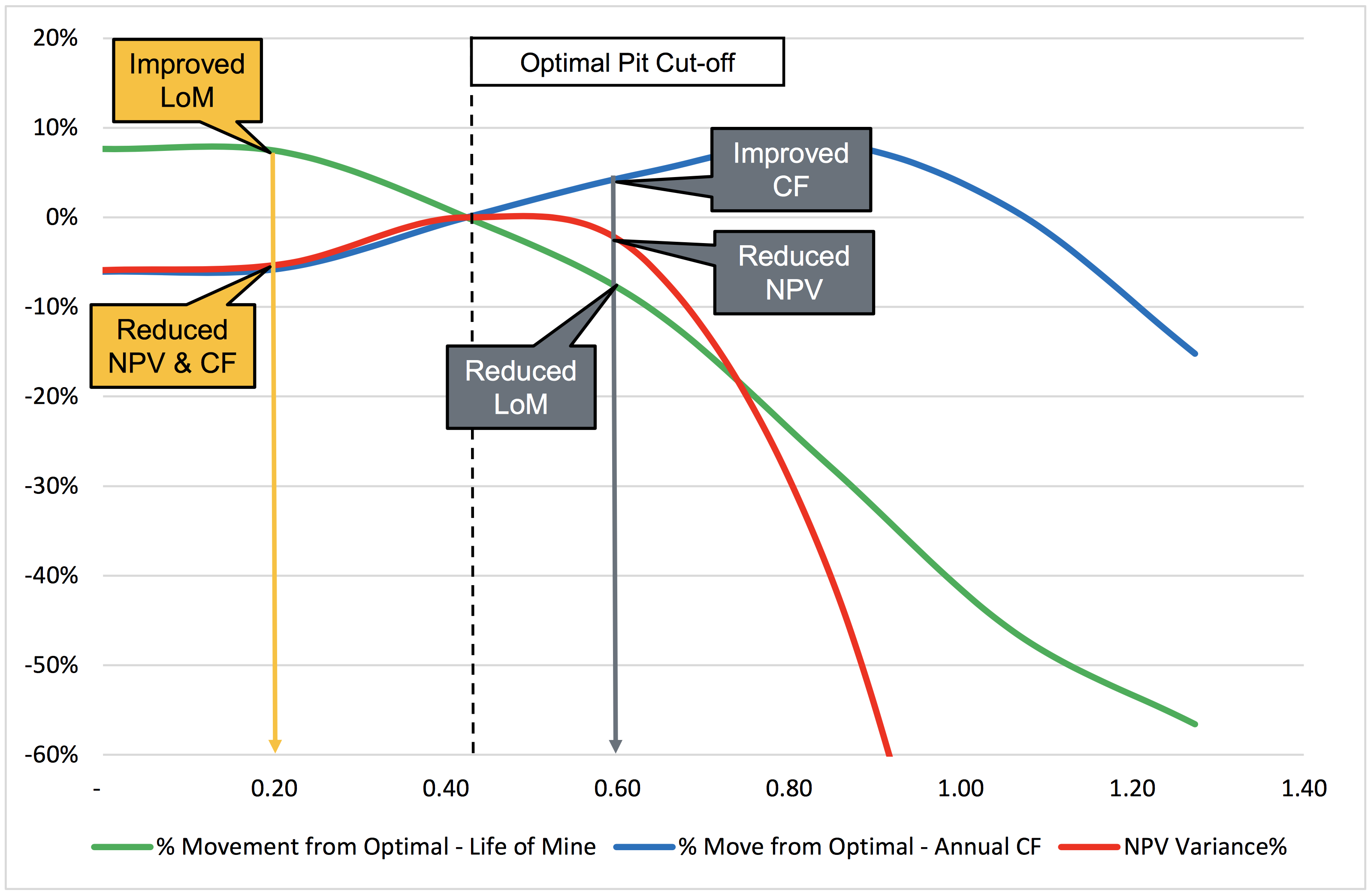 - Understanding the sensitivities will reduce the risk of executing a sub-optimal life of mine plan